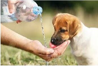 • Walk your dog and engage in outdoor play in the morning or evening, rather than the hottest part of the day. Hot concrete, asphalt, and sand can burn their pads, so walk where there is grass and stay in the shade if possible. Many merchants and outdoor cafés provide water for dogs, but always carry a bottle of water and portable water dish. Hydration is crucial (for you, too).
